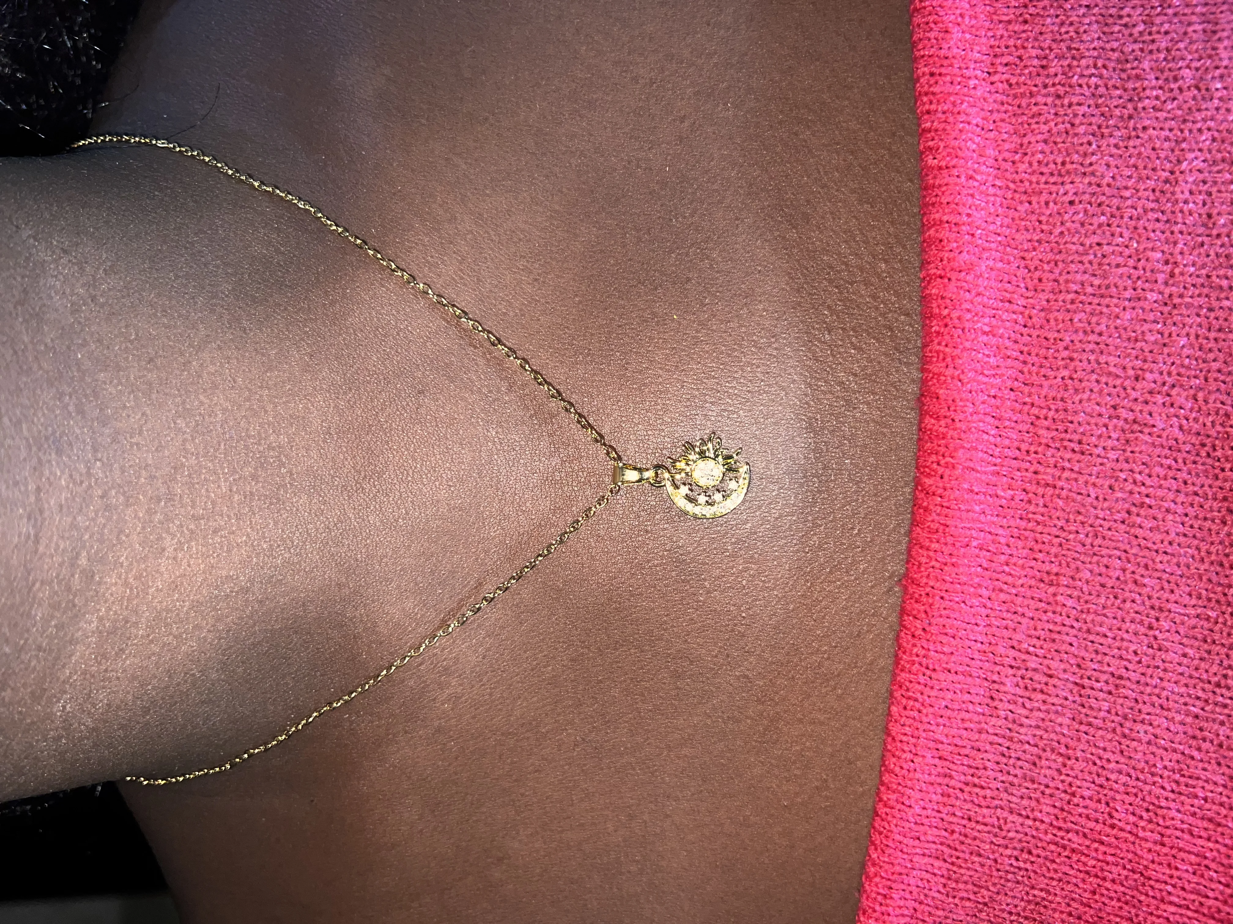 🌟 Finition élégante : Le pendentif est finement travaillé, avec des pierres serties qui captent la lumière sous tous les angles. La chaîne dorée est délicate, souple et agréable à porter.